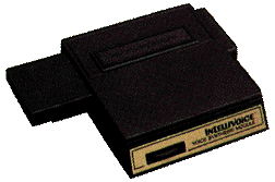 In addition, the Intellivision includes components not directly accessed by the game program. The principal functions of these components are to (1) generate the 3.579545 MHz system clock, (2) convert the digital sound and video signals to an RF output and (3) supply power for the system. These are not discussed further here. The information here also applies to the Radio Shack Tandyvision One, the Sears Super Video Arcade, and the INTV Master Component (also called INTV System III and the INTV Super Pro System), which are all simply clones of the Intellivision Master Component with minor cosmetic differences. CPU Since most 1610 instructions are 10-bits wide, game programs are stored in 10-bit wide ROMs. This 10-bit "byte" is referred to as a decle (rhymes with "heckle"). Some instructions require 16 bits; these are stored in two successive 10-bit locations, referred to as a bidecle. (For prototyping, dual 8-bit EPROMs are used, with the low 8 bits of each decle stored in one EPROM and the top 2 bits stored in the other.) STIC The STIC will display a background field of 240 "cards" (20 wide and 12 high; each card is 8 by 8 pixels), giving a resolution of 160 pixels wide and 96 pixels high (each pixel is 2 TV lines high and is in the proportion of 5 wide by 4 high). NOTE: The STIC does NOT display the far right column of pixels, giving an actual displayed resolution of 159 by 96 pixels. Each pixel can be in any of 16 colors (eight "primaries" and eight "pastels."). In addition, the STIC controls 8 "moving objects", each of which can be 8 wide by 8 high or, at double resolution, 8 wide by 16 half-pixels high (each moving object can also be double-sized in width and/or height). The beauty of this system is that once the CPU has defined a background and a moving object shape, it can change the location of an object merely by writing a different address to the STIC. NOTE: The moving objects can be located on a grid space wider and taller than the displayed background, allowing them to smoothly slide on or off the screen at the edges. [Blue Sky Rangers comment: Two methods were developed to get around the limit of only eight moving objects: (1) multiplexing is redefining and repositioning one object from frame to frame to give the illusion of two separate objects; (2) sequencing GRAM is writing directly to the Graphics RAM locations, normally only accessed by the EXEC, to animate background cards. Because it causes objects to flicker, marketing forbid the use of multiplexing (common in Atari 2600 and Colecovision games). Sequencing GRAM, however, was used often, including in Space Armada, Star Strike and TRON Solar Sailer to create screens full of movement.] The STIC will take care of changing the location of an object, background, overlaps, etc. The STIC will also keep track of moving object interactions with other moving objects or with the background field, and will signal the CPU when crashes occur. As an example, the CPU can define a playing field and a ball moving on it. Then the CPU can move the ball around the field merely by writing a new X,Y location to the STIC. The STIC will make sure that the background properly reappears after an object moves away, and (if requested) will signal the CPU when the ball moves off the edge of the playing field or intersects another moving object such as an opposing player. The STIC also can cause the entire background to move smoothly, one pixel at a time, either in the X-direction or the Y-direction. Moving objects move with the background. (Special subroutines are available to the programmer to use this feature to create continuous scrolling backgrounds.) Obviously, the STIC takes a lot of work off the CPU, and it makes it possible for Intellivision to have higher quality graphics than any other video game or home computer system. However, the STIC has limitations which the programmer has to work within, particularly in defining colors: Moving objects can have only ONE color each; a multicolor character must therefore be made up of more than one of the only eight moving objects. Each 8 by 8 background card can have only TWO colors on it. There are two methods for defining these colors: (1) Foreground/Background mode allows the colors for each card to be defined individually, but one of the two colors on each card is limited to the eight primary colors. Two pastel colors cannot appear on the same card. (2) Color Stack mode restricts one of the two colors on each card to either the current or next color from a programmer-defined four-color circular stack. However, since all 16 colors are available for the color stack, two pastel colors CAN appear on the same card. Modes cannot be mixed on one screen. In general, a complex screen design is easier to create in Foreground/Background mode, but a simpler (or very clever) design using Color Stack can be more colorful. (NOTE: There is a third mode, Colored Squares mode, that allows four primary colors to be defined per card, but it is literally limited to colored squares -- four equal-sized blocks per card. Therefore, the entire background must be made up of 4-pixel by 4-pixel solid-color squares. [This mode was only used three times, for Snafu and the unreleased games Empire and Brickout!]) SYSTEM
