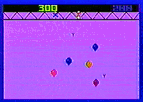 Two roller-skating dancers drop darts from a scaffold onto rising balloons. An easy enough task, except these rude guys keep bumping into each other and knocking each other off the scaffold. When the music stops, that's the signal for the next players to take the controllers.
