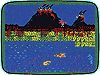 "In the sea are more mines, and giant mechanical sharks which Scarfinger uses to protect his fortress; also there are many oil slicks from the numerous tankers he has sunk in the area, and these can foul your engines. We believe that some missiles can be used as anti- ship weapons, releasing torpedoes when they hit the water. Your cycle is equipped with a laser rifle and a torpedo launcher for use in this part of your mission.