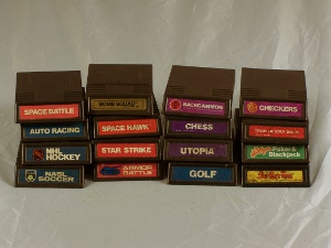 Unboxed cartridges: Space Battle, Auto Racing, NHL Hockey, NASL Soccer, Bomb Squad, Space Hawk, Star Strike, Armor Battle,